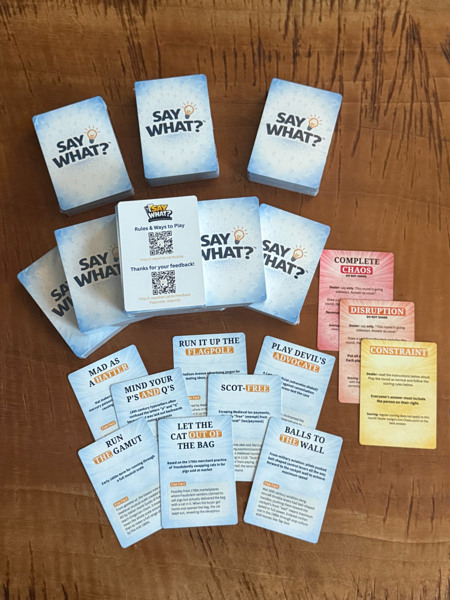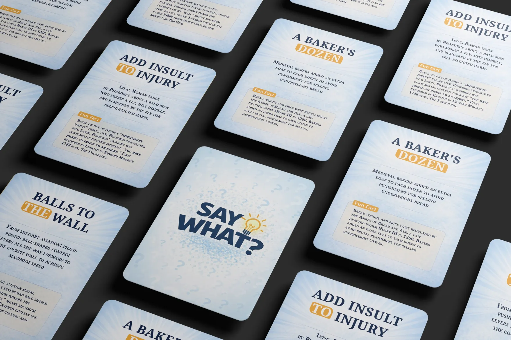 Phrase cards with a phrase, origin and a fun fact about its history.